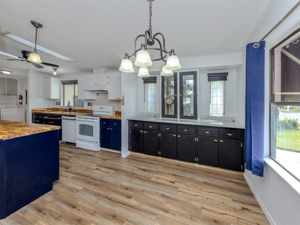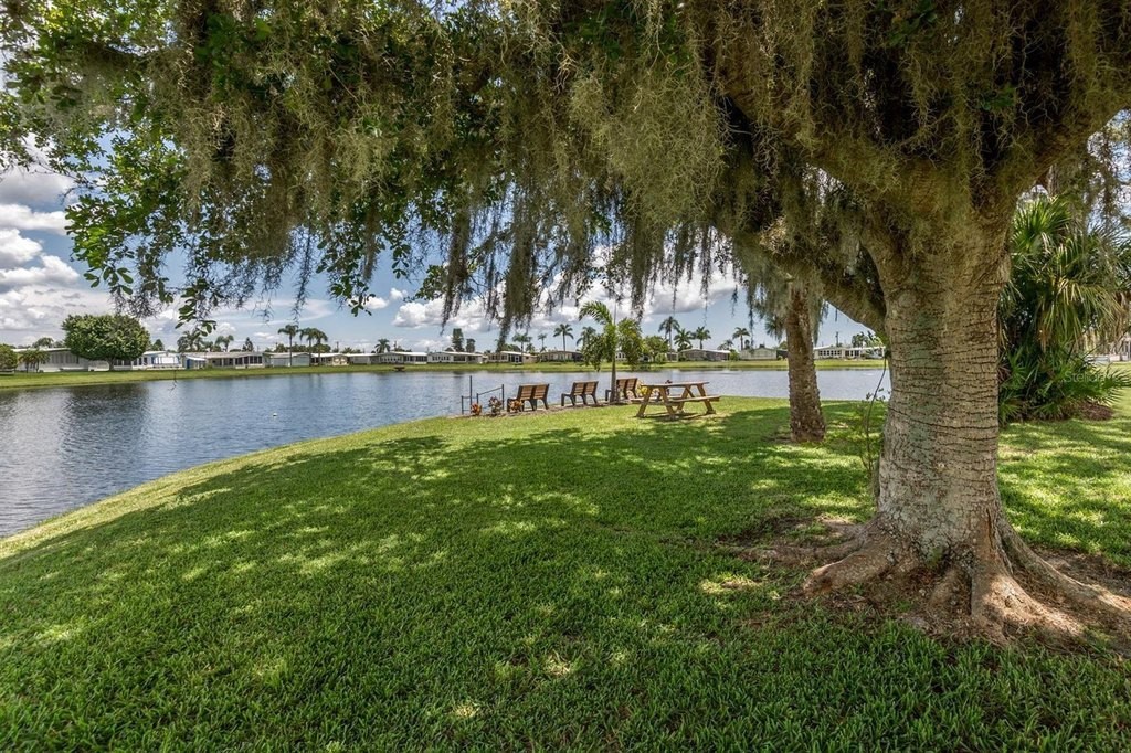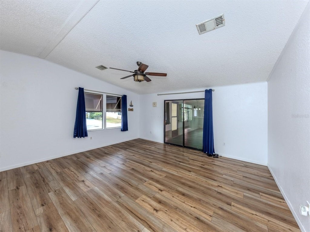 Discover spacious coastal living in this beautifully updated 1,592 sq ft home situated on a desirable corner lot in the pet-friendly, land-owned community of Harbor Isles. One of the standout features of this property is the impressive 25 x 20 Florida room, complete with new windows and a mini-split system, offering the perfect space for a pool table, hobby area, or an expansive entertainment retreat. Inside, the home shines with character and thoughtful updates. The kitchen features stunning refinished butcher block counters paired with striking navy-blue cabinets with convenient pull-outs. New luxury vinyl flooring flows throughout the main living areas, while both bedrooms offer the comfort of new carpeting. Vaulted ceilings add an airy feel, and the master suite boasts a large walk-in closet along with vessel sinks in both bathrooms for a modern touch. Additional upgrades include a new electrical panel with whole-house GFCI protection, a 2022 roof, a 2023 carport, inside laundry, and an extra-large storage shed providing plenty of room for tools, bikes, or beach gear. Harbor Isles is a highly sought-after land-owned community offering resort-style amenities, including a heated pool and spa, a well-equipped fitness center, tennis and pickleball courts, shuffleboard, a clubhouse with year-round activities, and a marina with access to the Myakka River. With its vibrant social atmosphere, beautiful landscaping, and convenient location near shopping, dining, and Gulf Coast beaches, Harbor Isles is the perfect place to enjoy the Florida lifestyle.